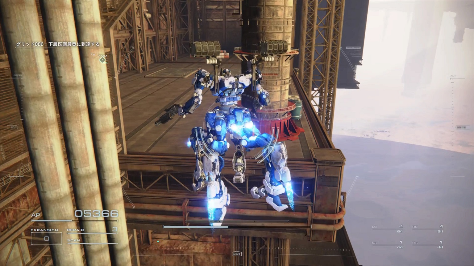 - 4機の無人ACを引き連れたボスACとまず1戦。まだ真っ当なAC戦。前座だけにリペアは使わない。
