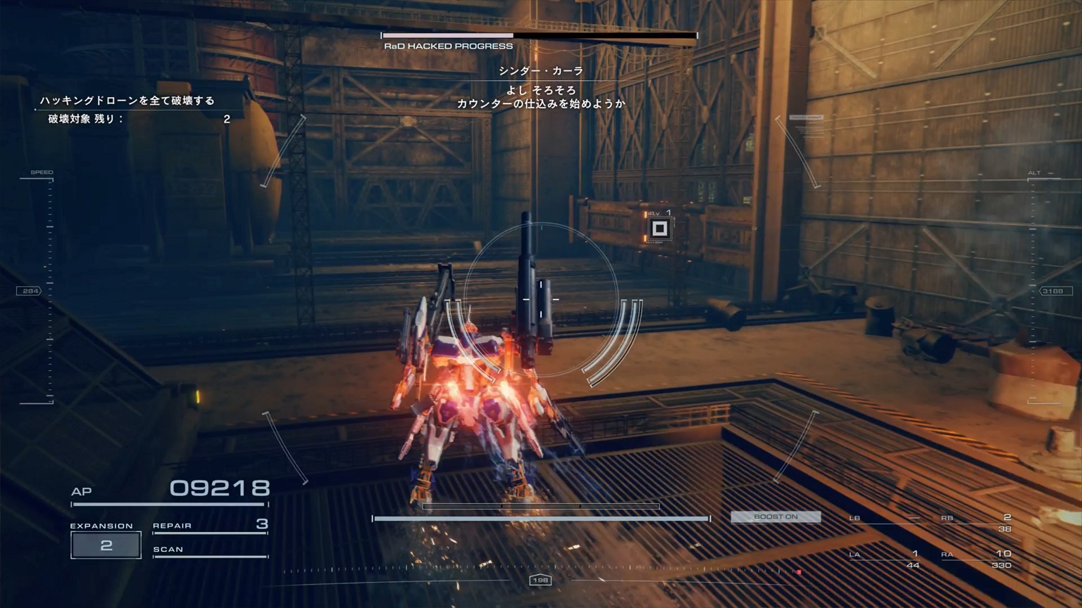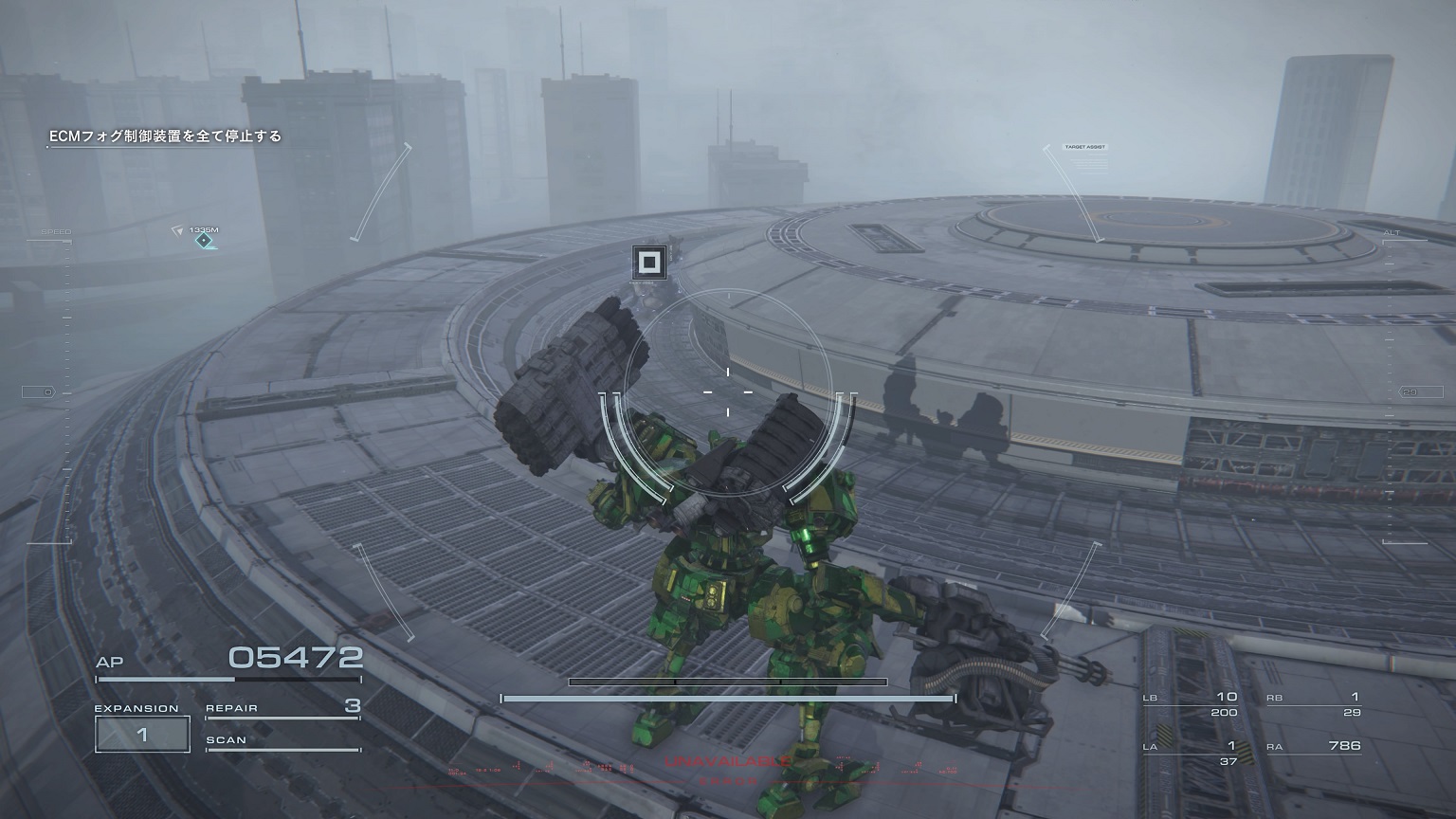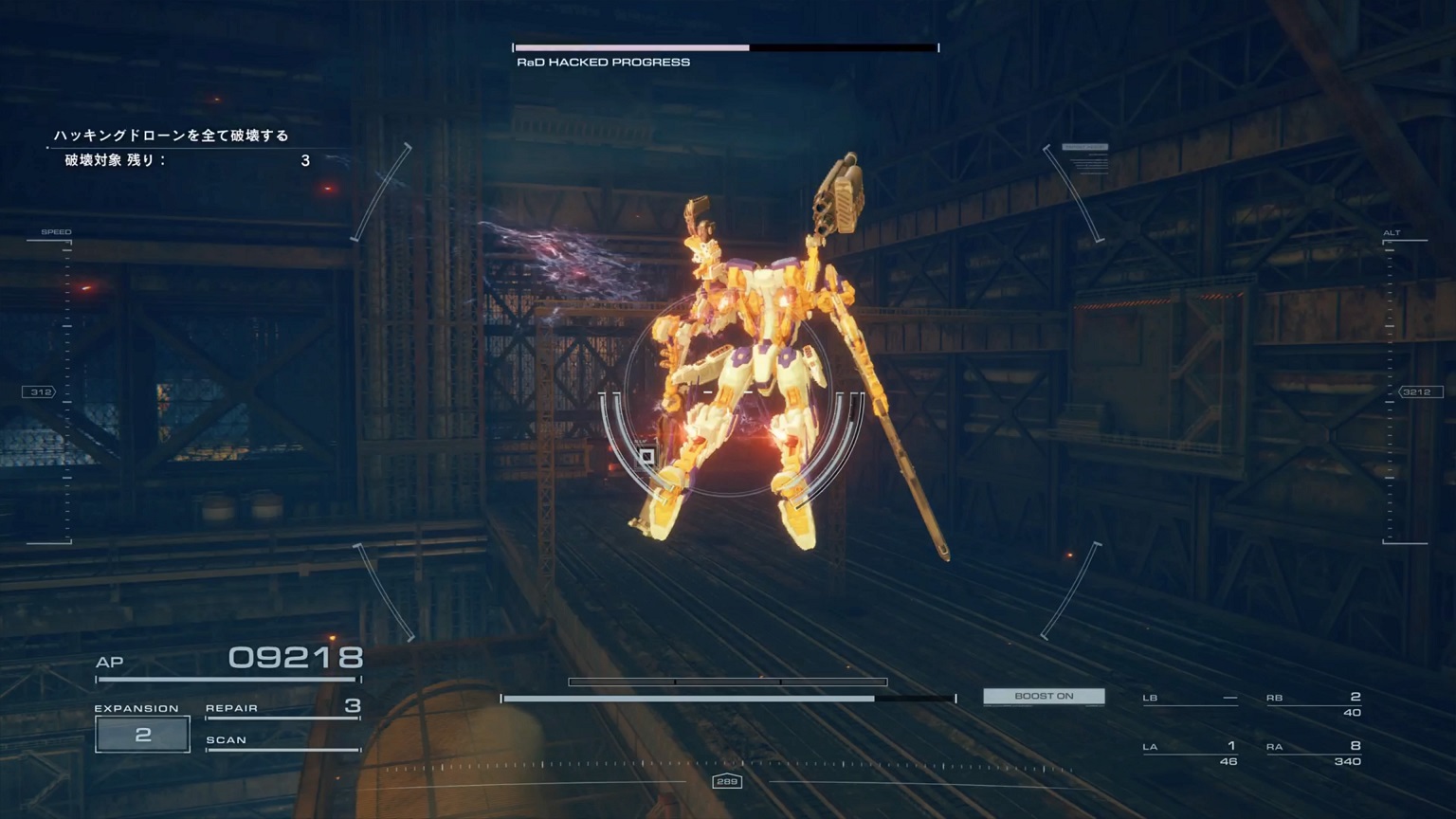 - 4機の無人ACを引き連れたボスACとまず1戦。まだ真っ当なAC戦。前座だけにリペアは使わない。