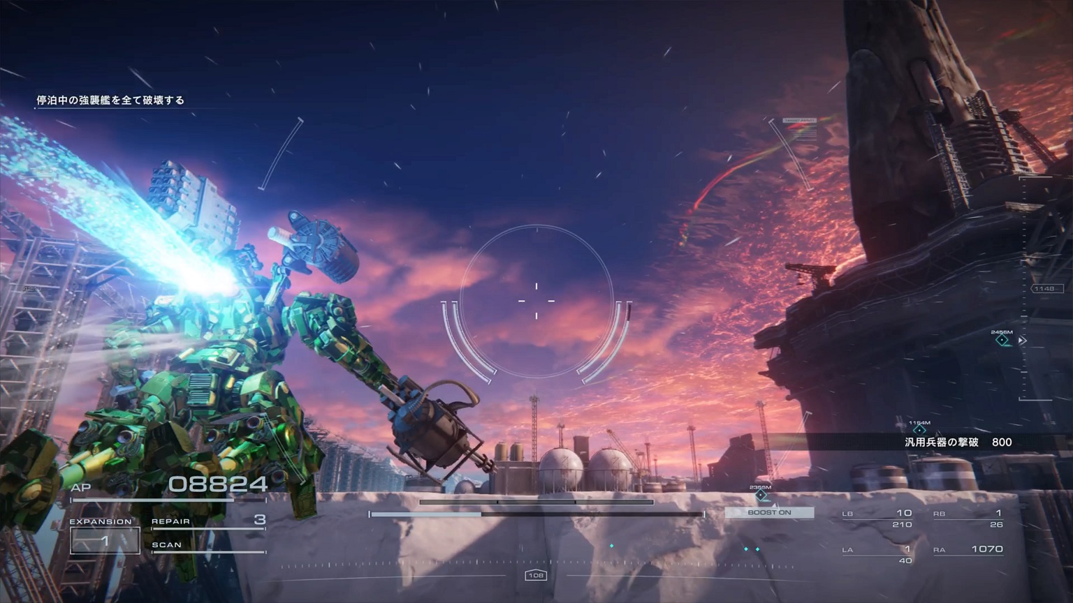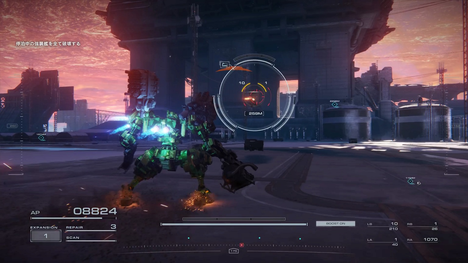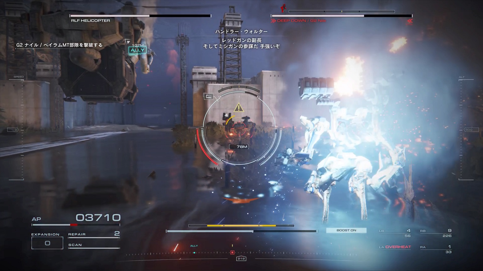 - 4機の無人ACを引き連れたボスACとまず1戦。まだ真っ当なAC戦。前座だけにリペアは使わない。