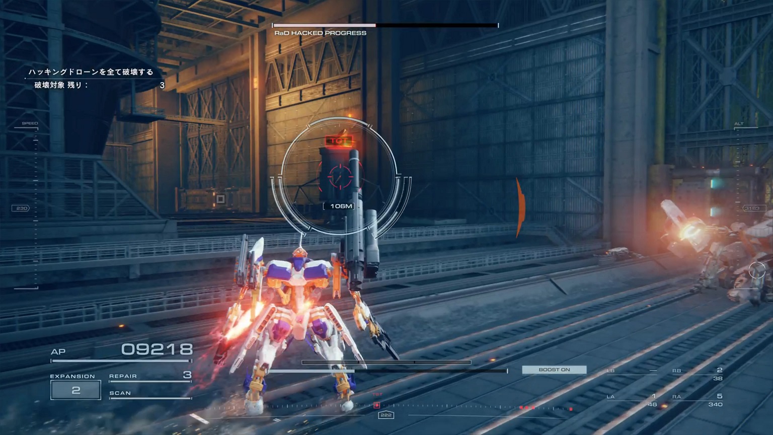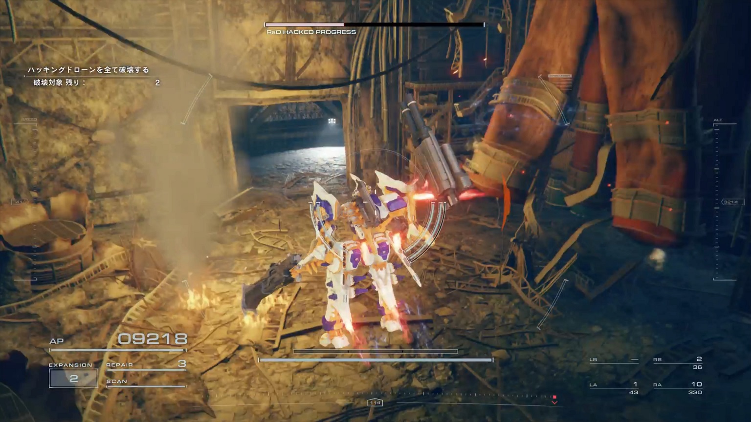 - 4機の無人ACを引き連れたボスACとまず1戦。まだ真っ当なAC戦。前座だけにリペアは使わない。