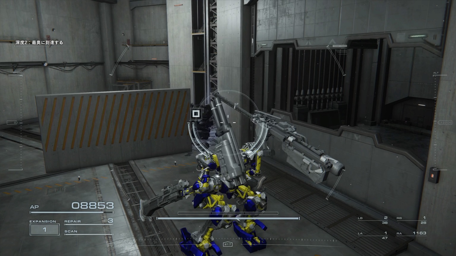 - 4機の無人ACを引き連れたボスACとまず1戦。まだ真っ当なAC戦。前座だけにリペアは使わない。