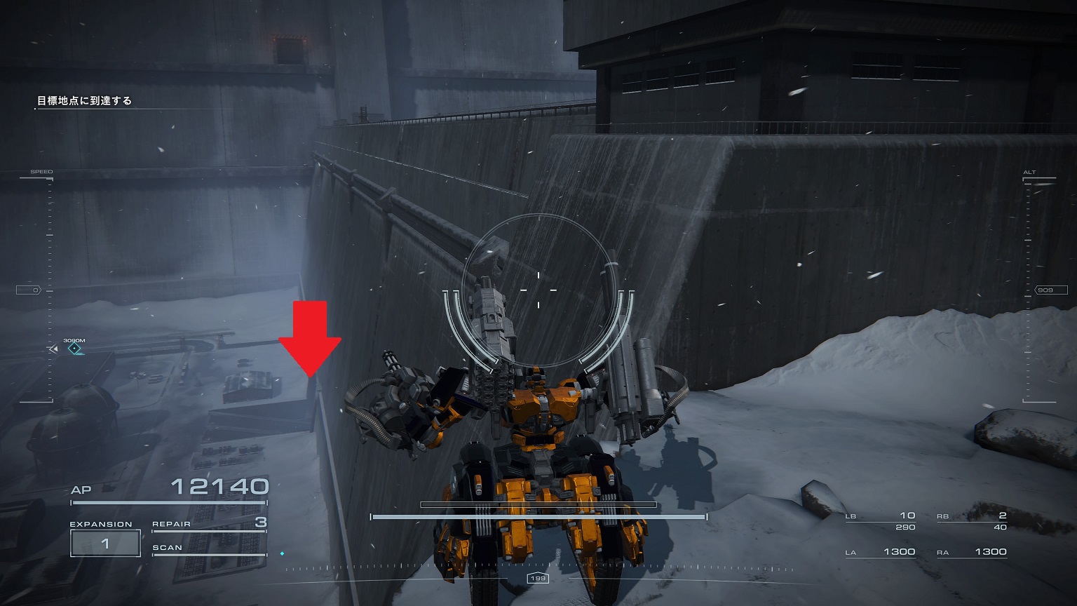 - 4機の無人ACを引き連れたボスACとまず1戦。まだ真っ当なAC戦。前座だけにリペアは使わない。