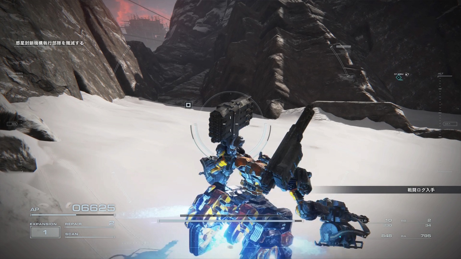 移設型砲台破壊 or グリッド135掃討 | 武器 | MA-J-200 RANSETSU-RF (BAWSライフル) | HG-003 COQUILLETT (短ハンドガン) | DF-BA-06 XUAN-GE (大豊バズ) | RF-024 TURNER[左手] (初期ライ) | MG-014 LUDLOW[左手] (ベイラムマシ) |