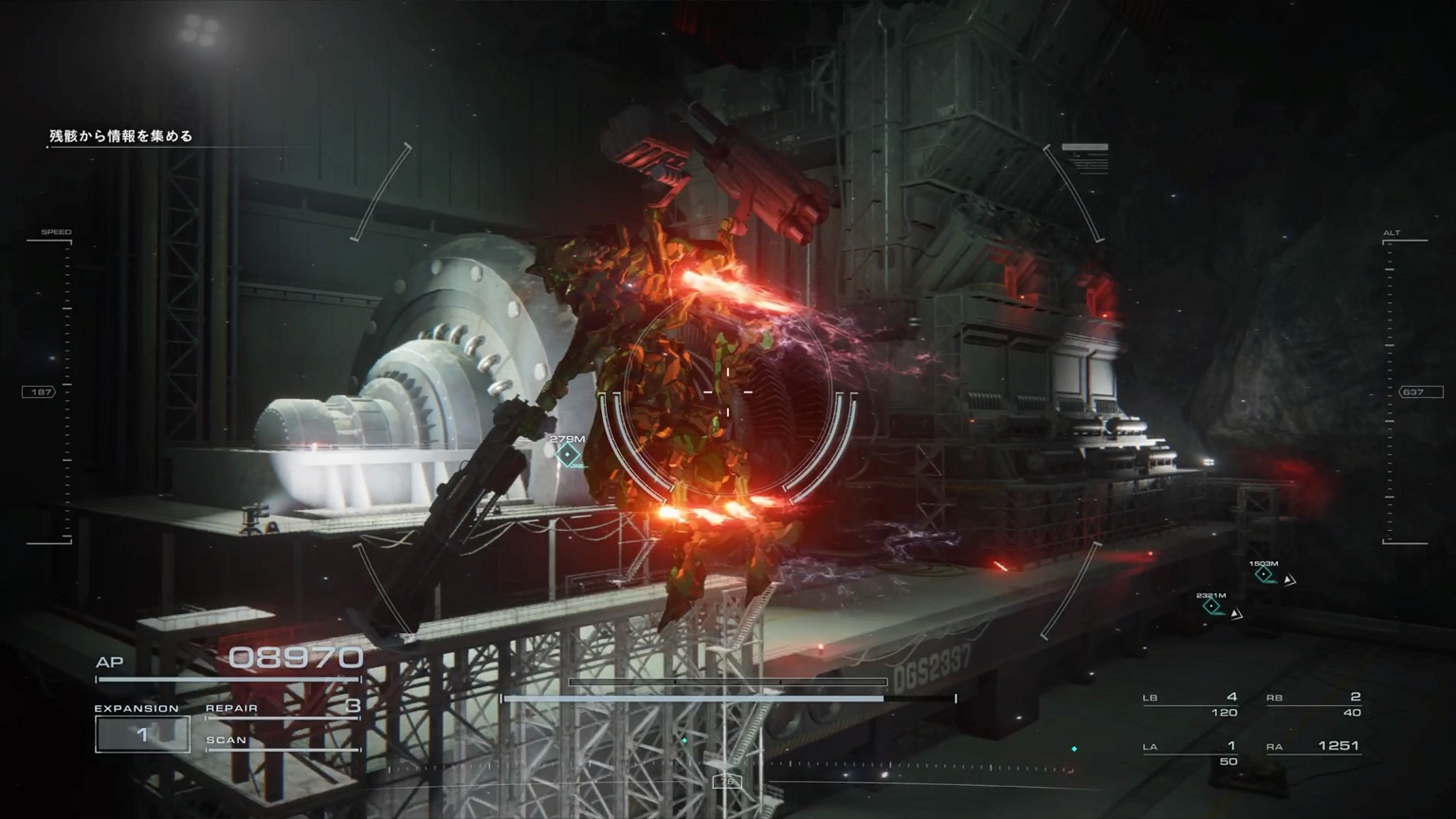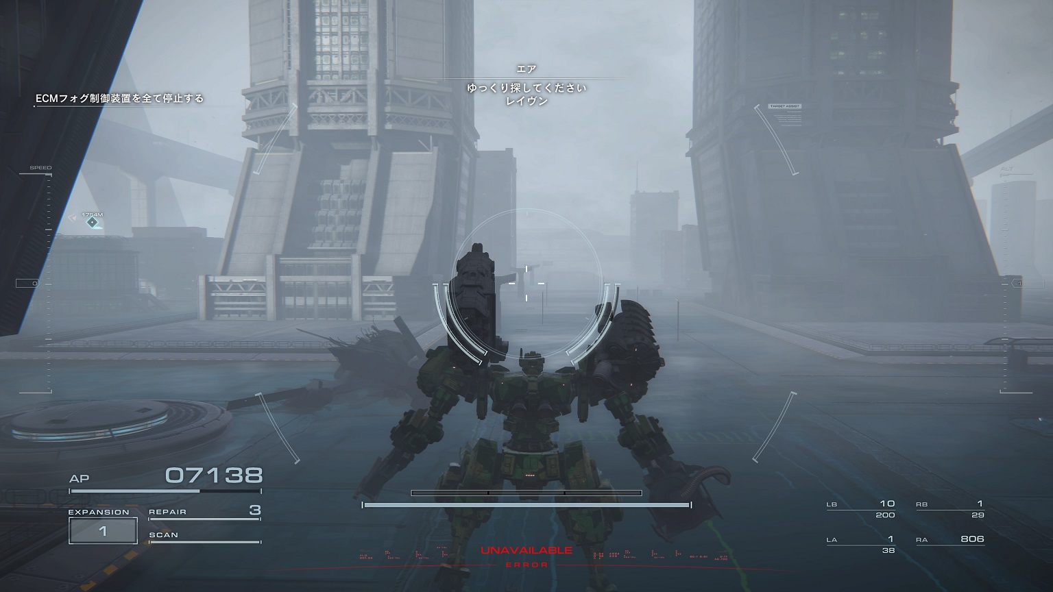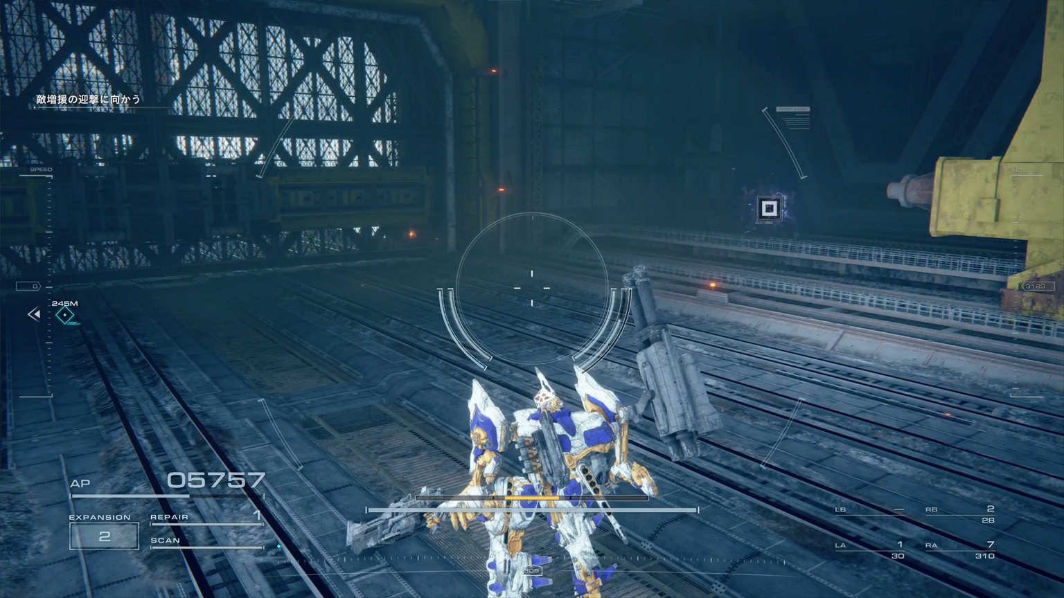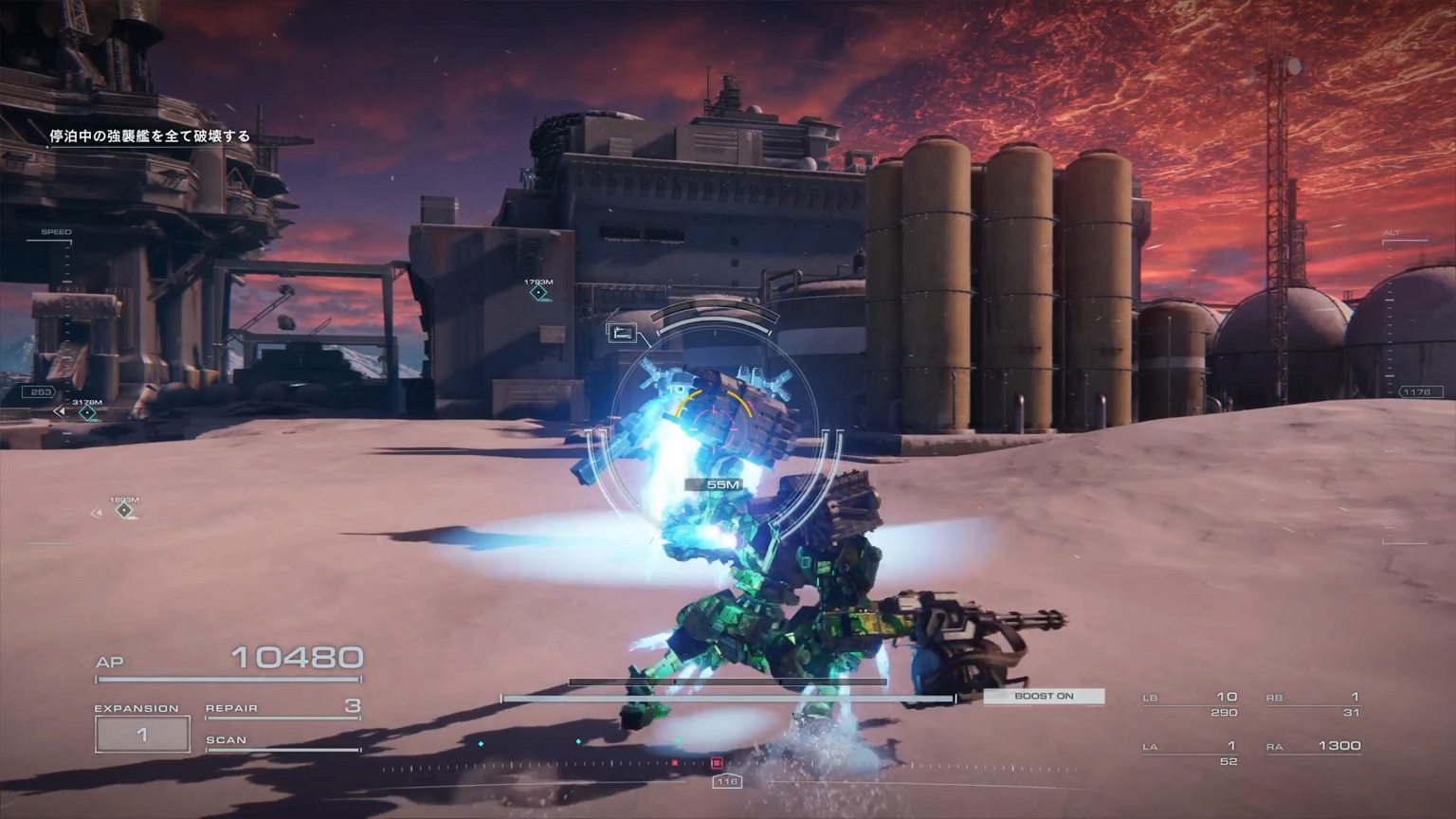 - 4機の無人ACを引き連れたボスACとまず1戦。まだ真っ当なAC戦。前座だけにリペアは使わない。