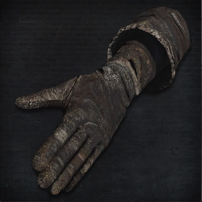 ヤハグルの黒手袋 | 隠し街の狩人たちが纏う厚手の黒手袋 隠し街を主宰する「メンシス学派」に通じる彼らは 狩人とは名ばかりの人さらい共であり、その衣装は夜に紛れる 主に物理防御力を意識した衣装である | |||||||||||